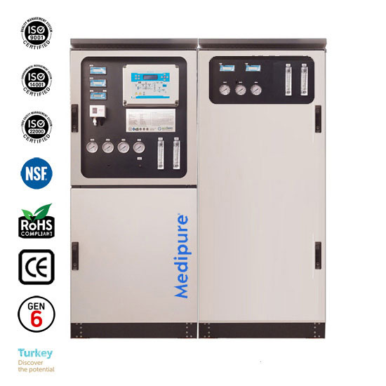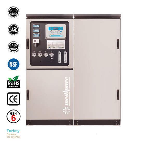 - Medipure XC-9750 Mobil Ultra Saf Su Cihazı; Mikro filtreleme, Karbon Filtreleme, Ozmotik demineralizasyon , Quadplex deiyonizasyon, High Boost ,Direct Flow, Auto Flushing, PLC AI ve 254 nm UV ışın gücü, Çift katmanlı saflaştırma Ultra filtreleme gibi opsiyonel özellikleri tek cihazda barındıran (ALL IN ONE) Dünya' nın ilk ve tek 6. nesil ultra saf su cihazıdır. Her türlü ortam şartında ve koşulda şebeke suyu değeri üzerinden %99,99 performans sağladığı, endüstri uygulamaları, medikal ve klinik uygulamalar ile üretim tesislerinde ispatlanmıştır.